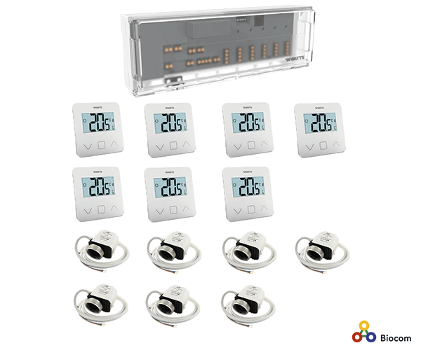 Den nye Watts Vision serie. Driftsikkert trådløs regulering af gulvvarmekredse. Vælg mellem 1-10 zoner/kredse.